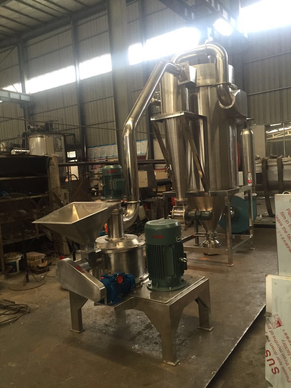 本机由主机、辅机、电控箱三部分组成,具有风选式,无筛网,粒度均匀等多种性能,生产过程连续进行,适用于制药、化工、食品等行业脆性物料的粉碎。